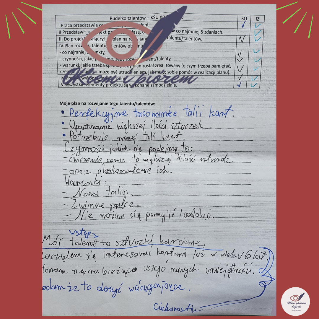 PS Poniżej karta z kryteriami do pudełka talentów.