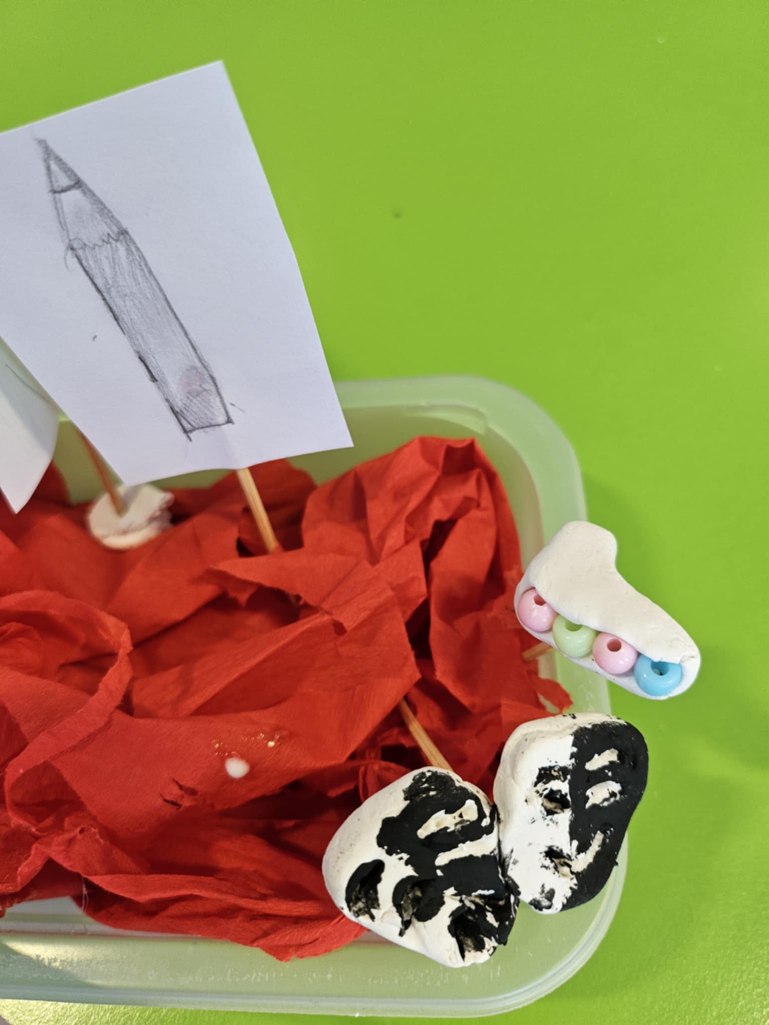 Dzieciaki umieszczały talenty w pudełkach po mojej diecie pudełkowej, ale wizualizację możecie zaproponować zwyczajnie, na kartce kredkami/farbkami albo plastelinowo, albo w formie elektronicznej, albo z wykorzystaniem klocków, albo kalamburowo, albo… jakkolwiek.