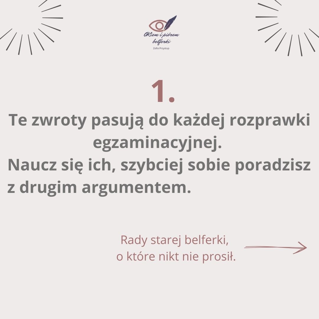 PS Pigułkę, w której znajdziecie zwroty wprowadzające pierwszy argument rozprawki ( i tak dalej) możecie pobrać TU.